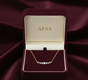 This elegant necklace is a timeless piece designed for subtle luxury and everyday wearability. It features a delicate “smile” pendant suspended between two fine gold chains. This style is minimalist yet impactful, creating a beautiful curve that rests perfectly on the collarbone.